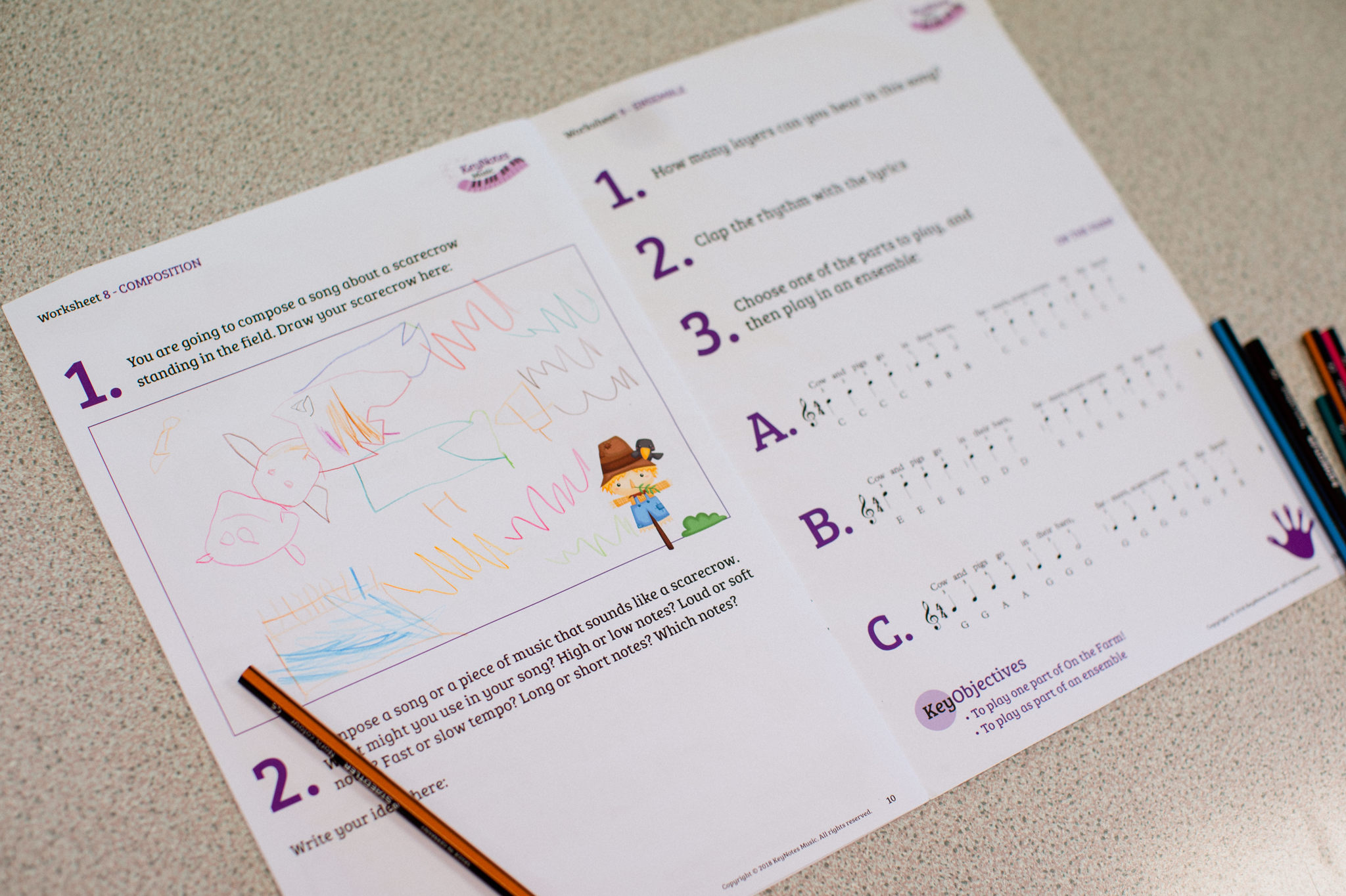Creative Exploration: Our innovative approach integrates musical concepts like pitch and dynamics with familiar themes such as farm animals, weather, and sea creatures.